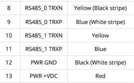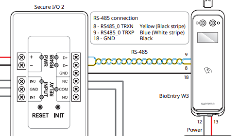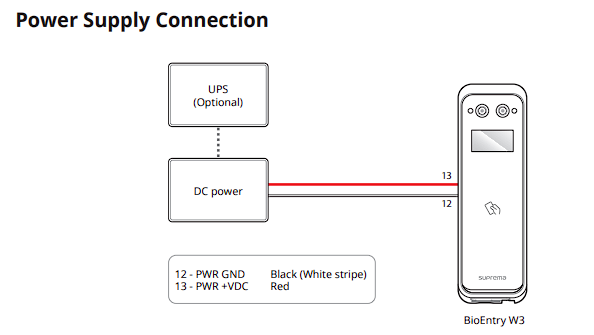 Pins 12 & 13 are the Power connections of the W3 reader, this takes 12v DC @ 1Amp