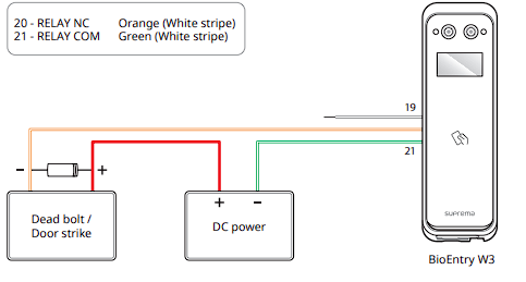 Pins 19-21 is the Relay of the device. This can be used to open doors or secure locks from the relay directly