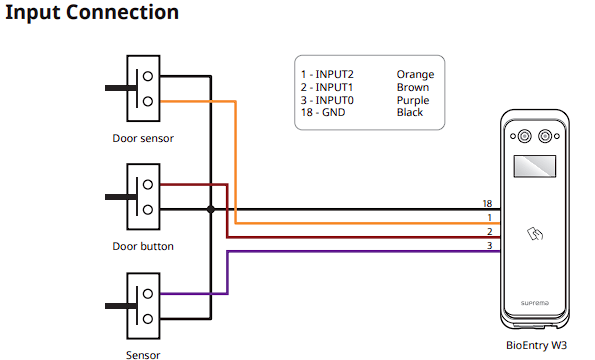 Input Connections, this is used for sending input from Push to exit buttons, camera inputs or door sensors