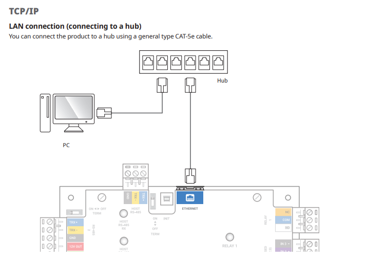 CS-40 has automatic MDI/MDI-X function, so it can be connected to a PC directly using a normal type CAT-5e cable.